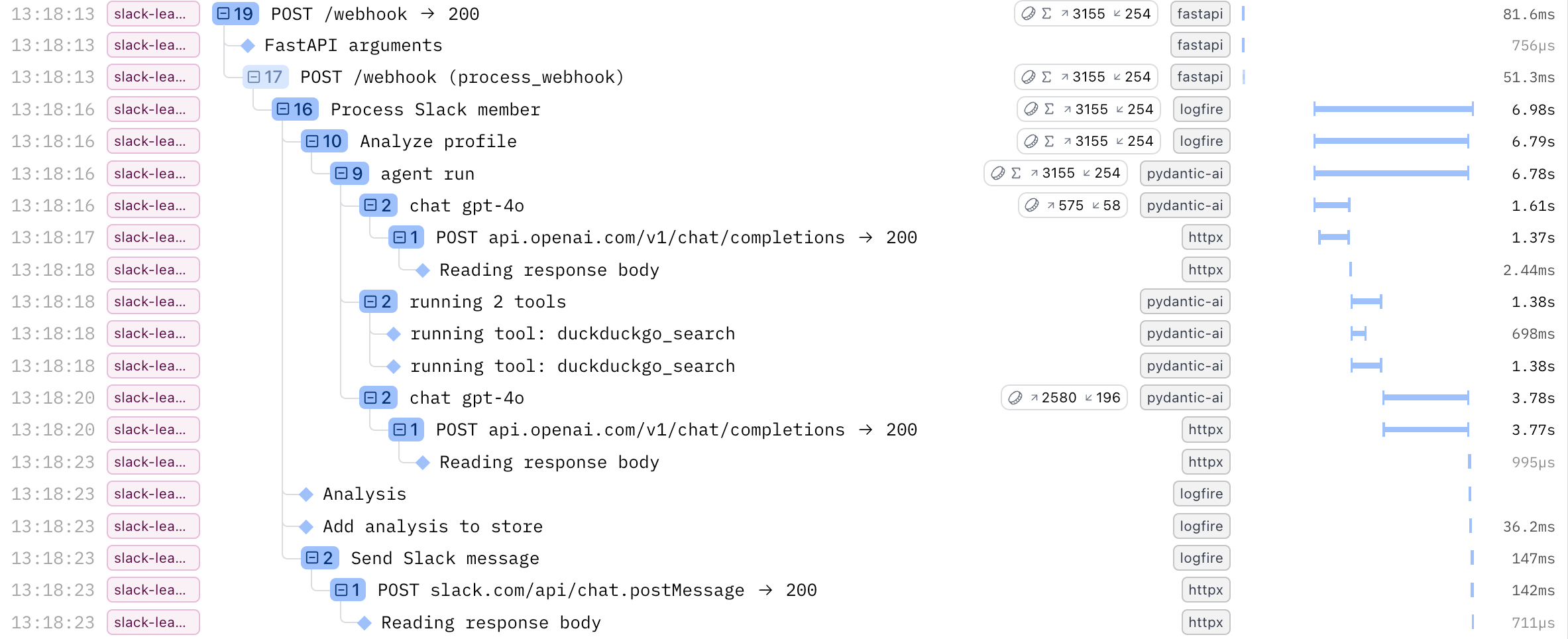 Let's implement a FastAPI endpoint to handle the team_join Slack webhook (also known as the Slack Events API) and call the process_slack_member function we just defined. We also instrument FastAPI using Logfire for good measure.